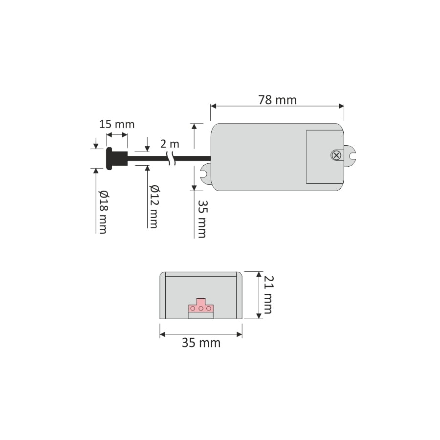 Wymiary wyłącznika 70x30x20 mm