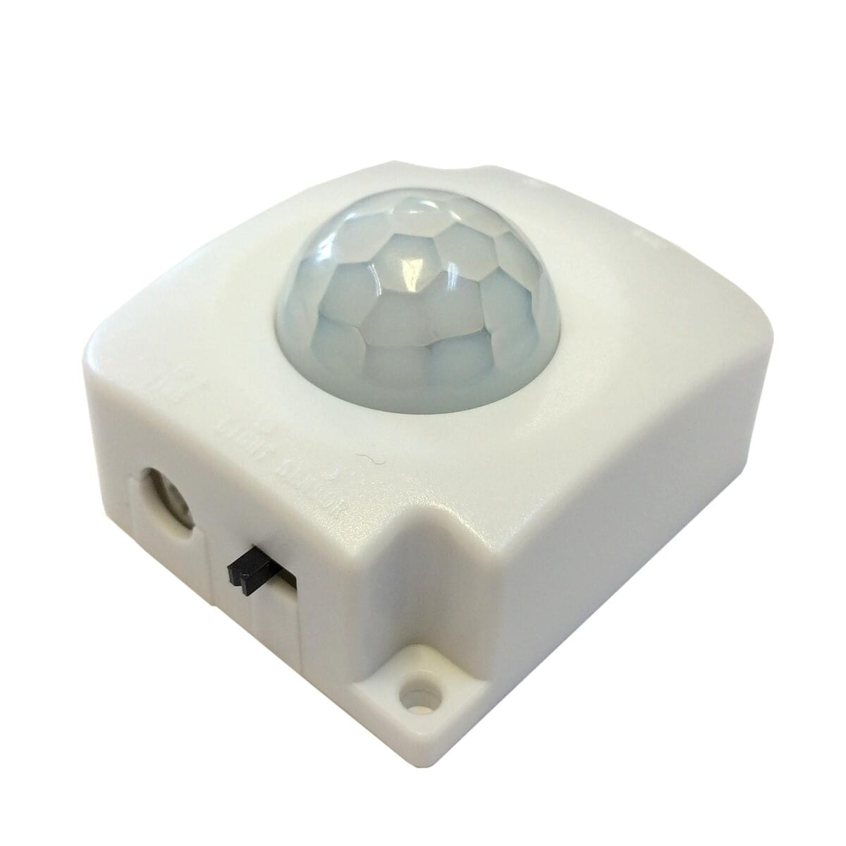 Niewielkich rozmiarów nawierzchniowy czujnik ruchu mini w kolorze białym z łatwym podłączeniem zasilania i odbiornika LED oraz regulacją czasu świecenia po wykryciu ruchu oraz wbudowanym czujnikiem zmierzchu który daje możliwość załączenia oświetlenia np. tylko po zmierzchu.