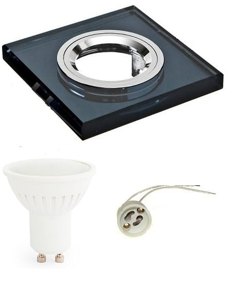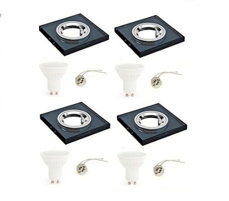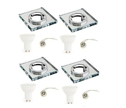 ZESTAW 4 SZT OPRAWEK SUFITOWYCH WPUSZCZANYCH SZKLANYCH KWADRATOWYCH KOLORU SREBRNEGO LUB CZARNEGO Z ZARÓWKAMI LED GU10 230V 5W O BARWIE ŚWIATŁA BIAŁEJ CIEPŁEJ. OPRAWKI W ZESTAWIE WYKONANE ZE SZKŁA I ALUMINIUM DEDYKOWANE DO WSZELKIEGO RODZAJU SUFITÓW PODWIESZANYCH. W KOMPLECIE Z OPRAWKĄ GNIAZDO ŻARÓWKI GU 10 Z PRZEWODEM ORAZ ŻARÓWKA LED O MOCY 5W I BARWIE ŚWIATŁA BIAŁEJ CIEPŁEJ.