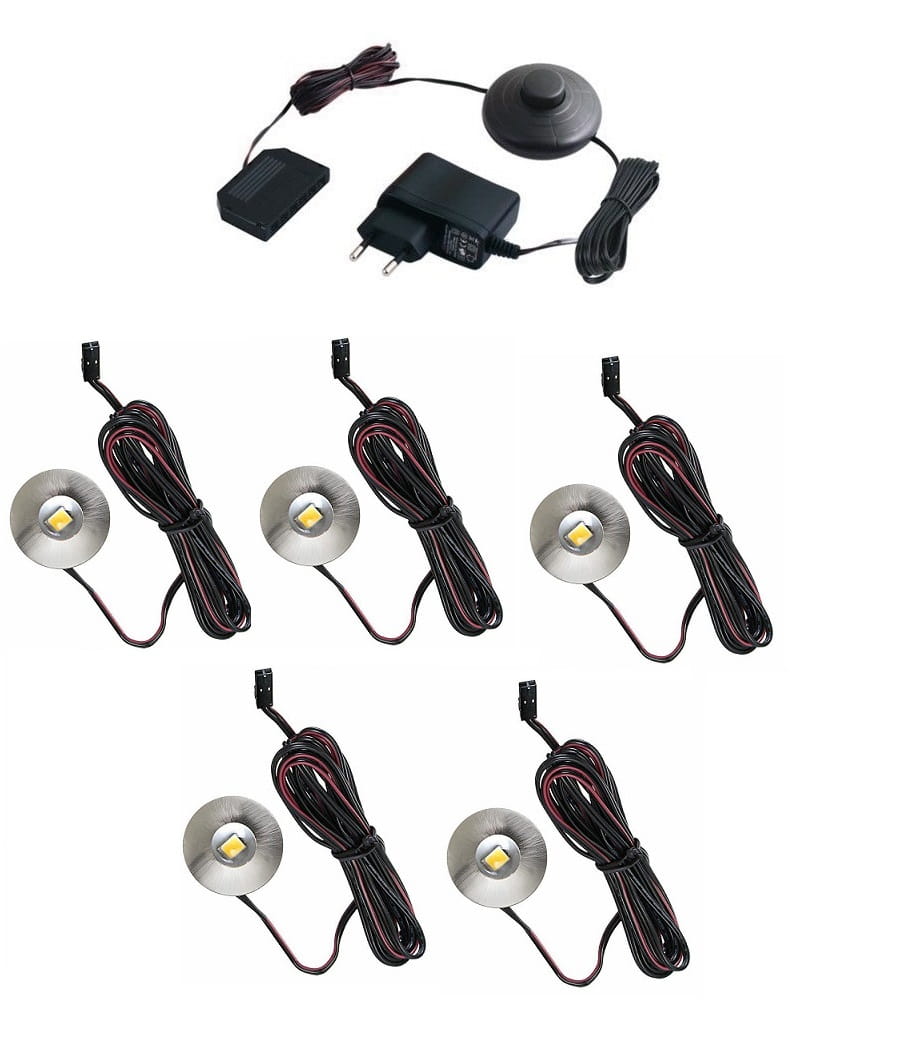 Zestaw podświetlenie mebli 5 x oprawa LED Iris 12V DC biała ciepła