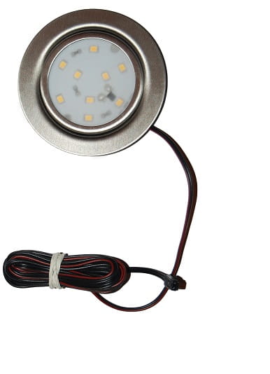 Oprawa LED w zestawie - okrągła koloru stal szlifowana ultra płaska - wpuszczana ,obudowa metalowa o grubości zaledwie 6 mm. Montaż opraw w otworze fi 55mm za pomocą dwóch micro wkrętów.