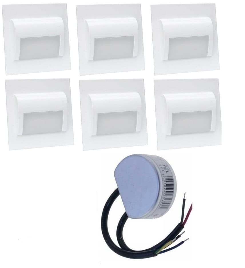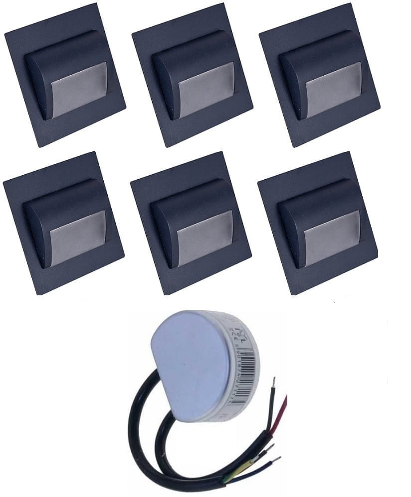 Oświetlenie schodów 6 opraw led 1,5W zasilacz 12V DC zestaw