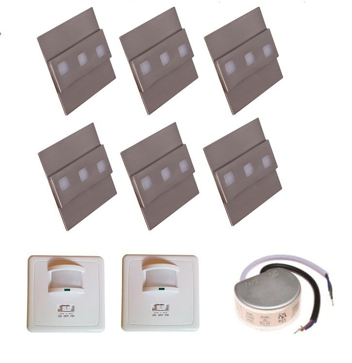 Zestaw oświetlenia schodów z czujnikami ruchu 6 opraw Modesto