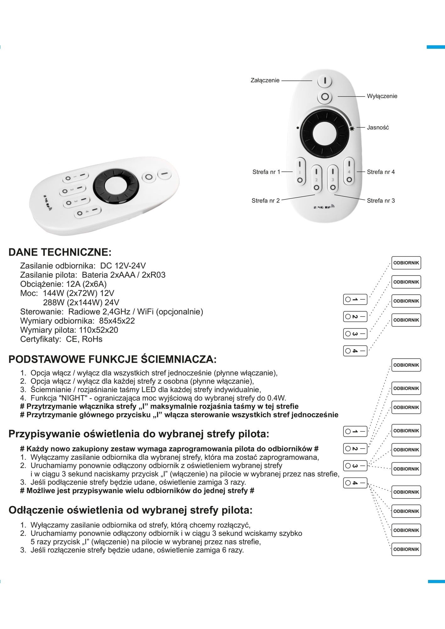 Technologia urządzenia pozwala na użycie jednego pilota do wielu odbiorników i sterowania każdej strefy osobno.