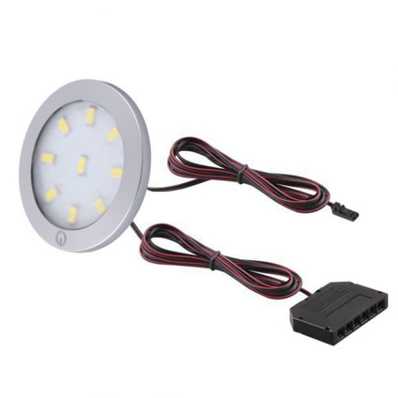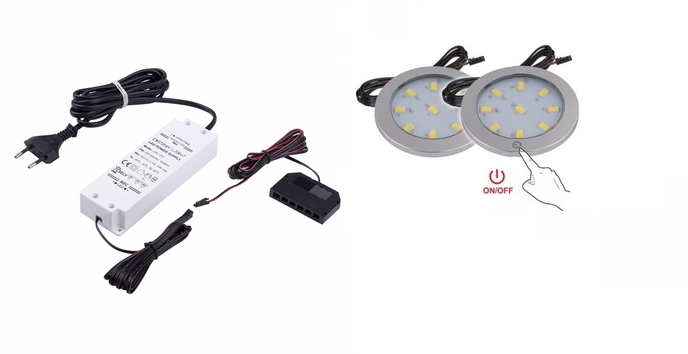 Gotowy połączony kompletny zestaw oświetlenia mebli szczególnie polecany do oświetlenia pod szafkowego w kuchni a także do oświetlenia gablot,regałów lub witryn. W zestawie dwie opraw LED ORBIT nawierzchniowe w tym jedna z wyłącznikiem dotykowym i rozdzielaczem,zasilacz rozdzielacz oraz okablowanie . Każdy oprawa posiada przewód o długości 2m włączony do rozdzielacza . Załączenie /wyłączenie oświetlenia następuje poprzez dotyk oprawy z wyłącznikiem w oznaczonym miejscu.Oprawy wykonane z PCV malowane w kolorze alu o barwie światła białej ciepłej lub białej neutralnej.
