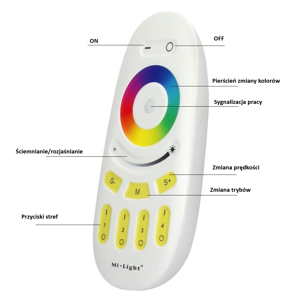 Cztery odbiorniki strefowe MiLight FUT037 + pilot MiLight 4-strefowy to produkty łączące w sobie nowoczesność oraz praktyczne rozwiązania z zakresu sterowania oświetleniem LED w technologii RGB .Zestaw czterech odbiorników strefowych i jeden pilot strefowy pozwala na za sterowanie czteroma niezależnymi odcinkami taśmy LED RGB (wielokolorowej) , Z poziomu pilota można zał/wył zmienić barwę światła ,włączyć jeden z trybów dynamicznych , ściemnić lub rozjaśnić każdy osobno odcinek taśmy LED lub wszystkie naraz. Proponowany zestaw daje możliwość za sterowania przy pomocy jednego pilota oświetlenie LED w całym domu.
