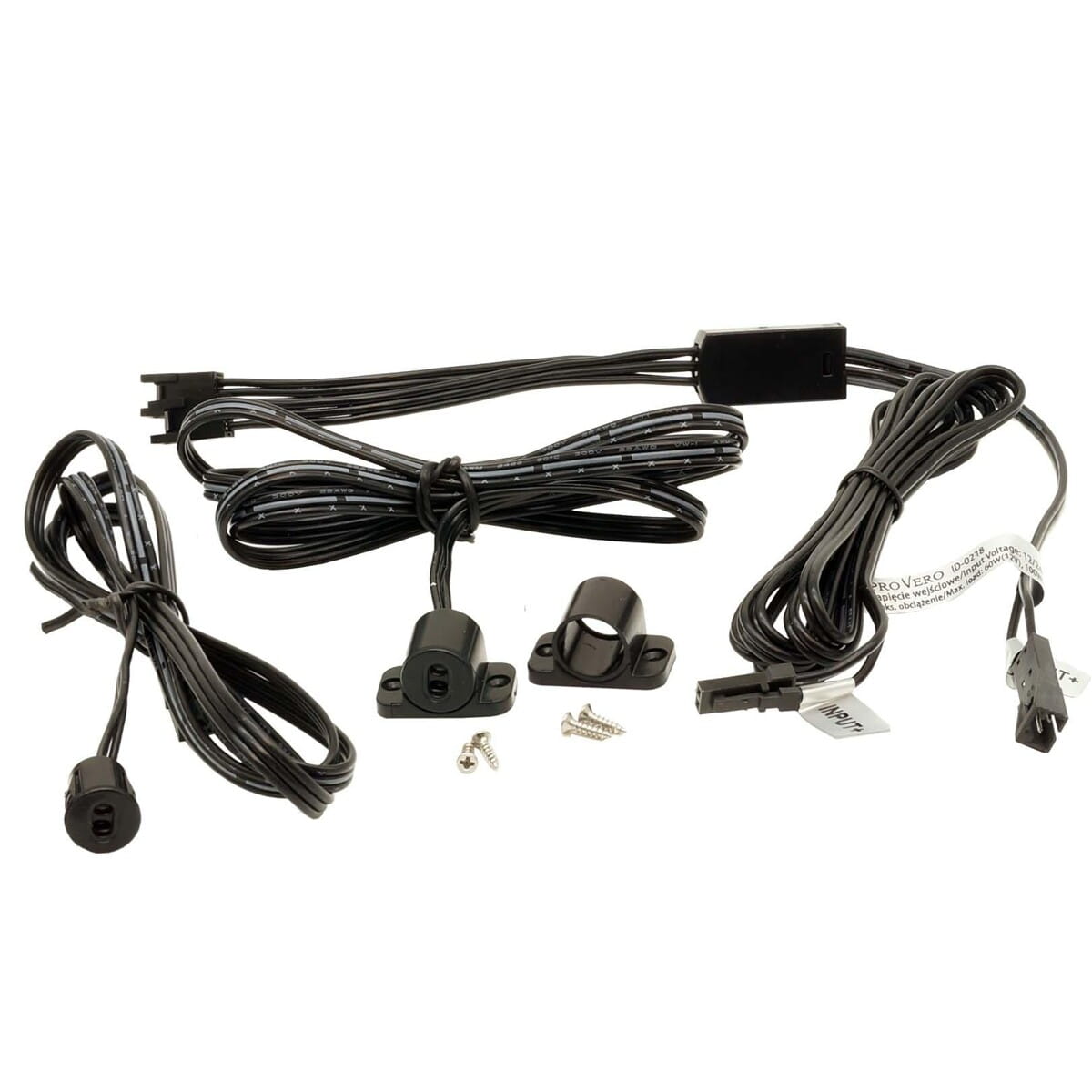 - Działanie Włącznik sensor do drzwi/szuflad załącza obwód elektryczny w momencie np. otwarcia drzwi szafy (jeden z sensorów zostaje odsłonięty) i wyłącza je po zamknięciu wszystkich drzwi (obydwa sensory muszą byś zasłonięte). Wyłącznik posiada jedno wyjście na odbiornik LED i może sterować tylko jednym odbiornikiem LED.