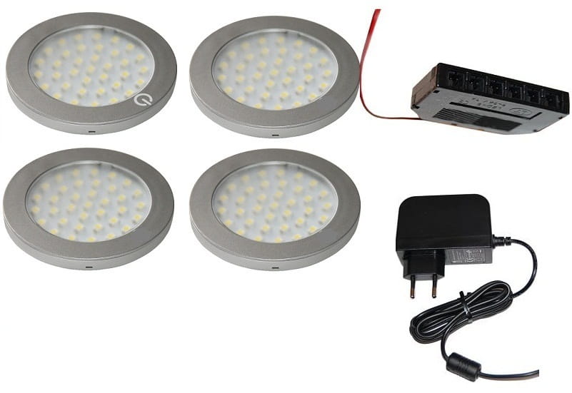 Gotowy połączony kompletny zestaw oświetlenia meblu szczególnie polecany do oświetlenia pod szafkowego w kuchni a także do oświetlenia gablot,regałów lub witryn. W zestawie cztery opraw LED nawierzchniowych w tym jedna z wyłącznikiem dotykowym ,zasilacz ,rozdzielacz oraz okablowanie . Każdy oprawa posiada przewód o długości 2m włączony do rozdzielacza . Załączenie /wyłączenie oświetlenia następuje poprzez dotyk oprawy z wyłącznikiem w oznaczonym miejscu.