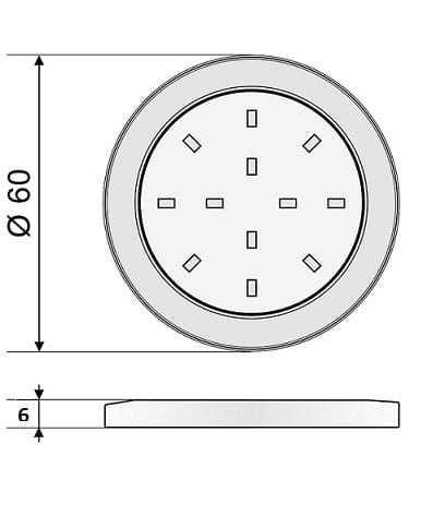 | Wymiary oprawy | Średnica 60mm grubość 6mm |