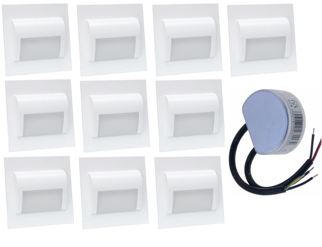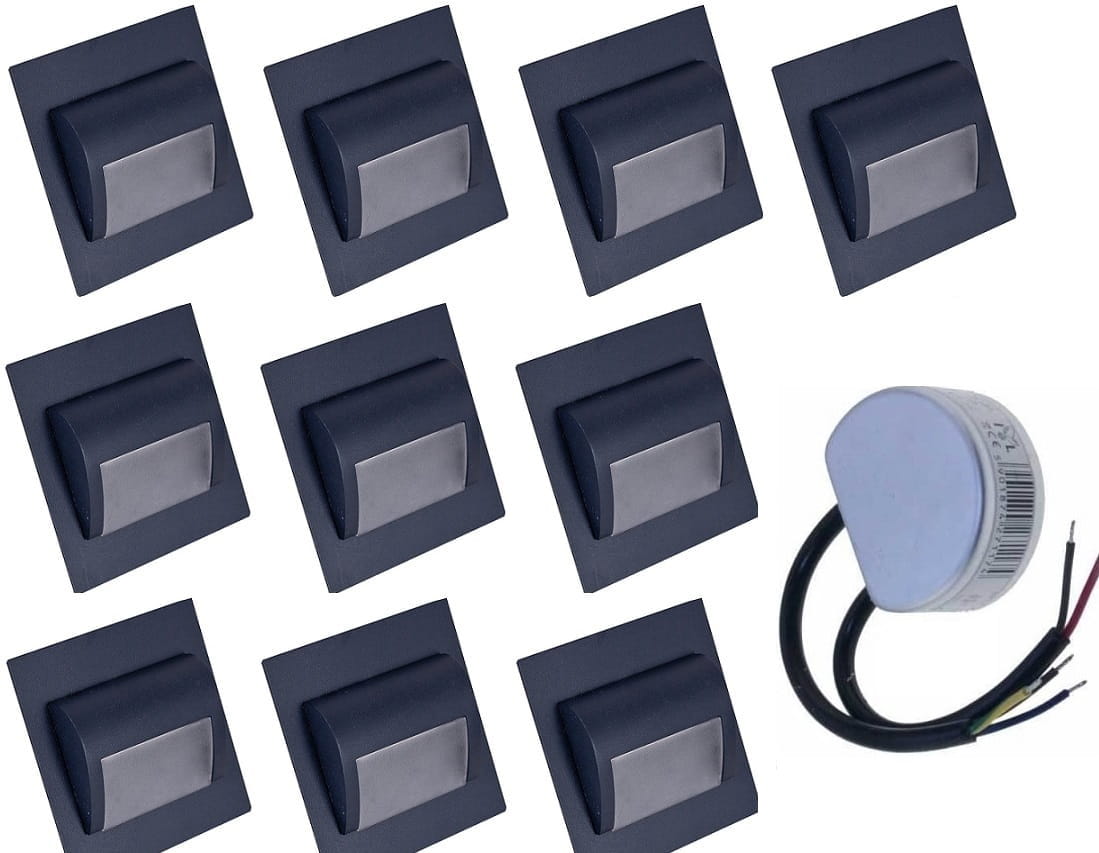 Oświetlenie schodów 10 opraw led 1,5W zasilacz 12V DC zestaw