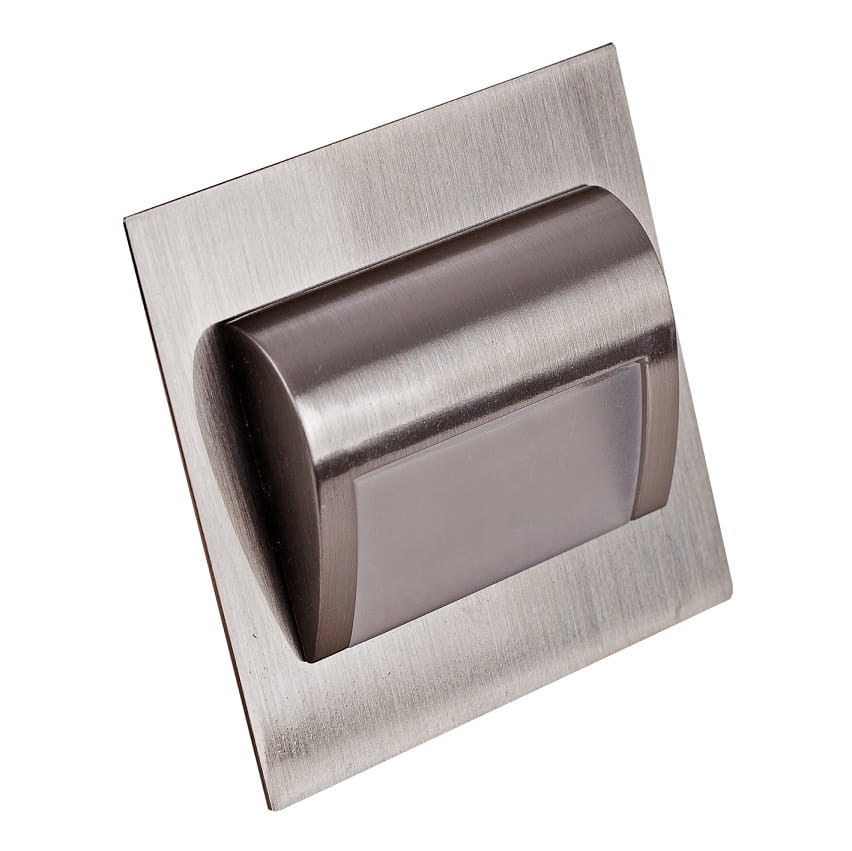 Oprawa LED wykonana z metalu dostępna w pięciu wersjach kolorystycznych : satyna,mosiądz,biała grafitowa,czarna i dwóch barwach światła biała ciepła lub biała zimna o nowoczesnym wyglądzie przeznaczona do oświetlenia schodów,ciągów komunikacyjnych,holi.