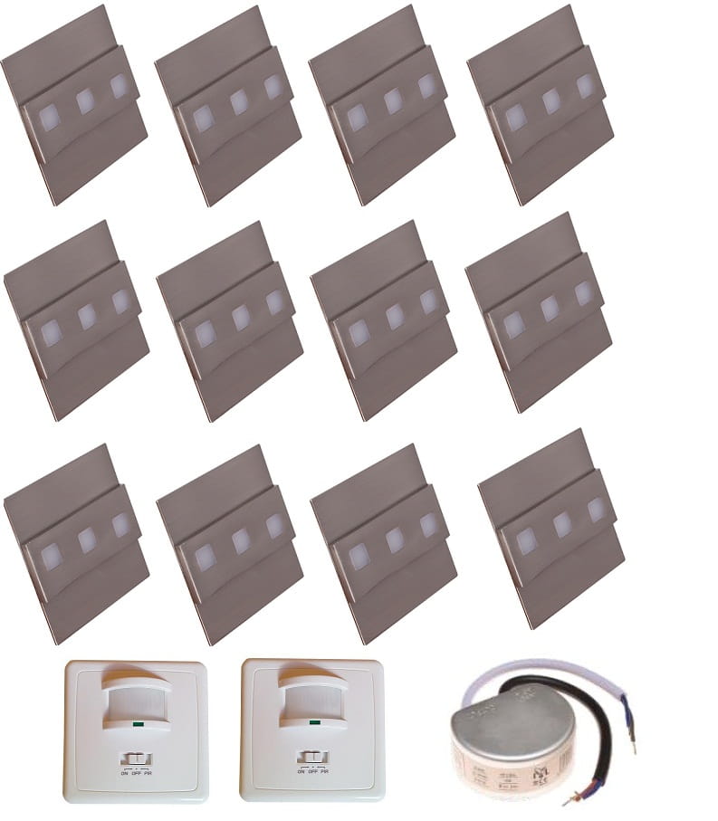 Zestaw oświetlenia schodów z czujnikami ruchu 12 opraw Modesto