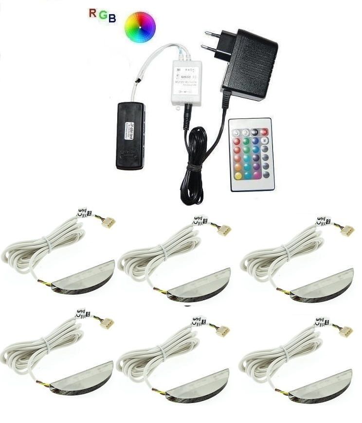 Zestaw LED RGB 6 x klips Zeta do szklanych półek pilot 12V DC