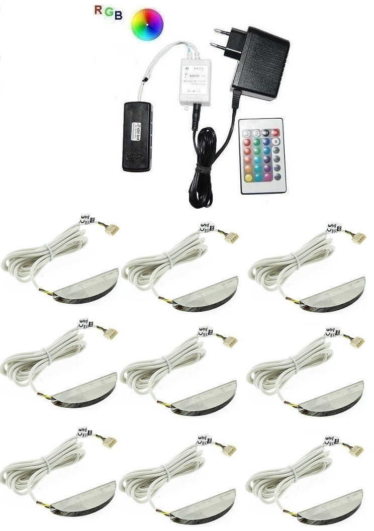 Zestaw LED RGB 9 x klips Zeta do szklanych półek pilot 12V DC