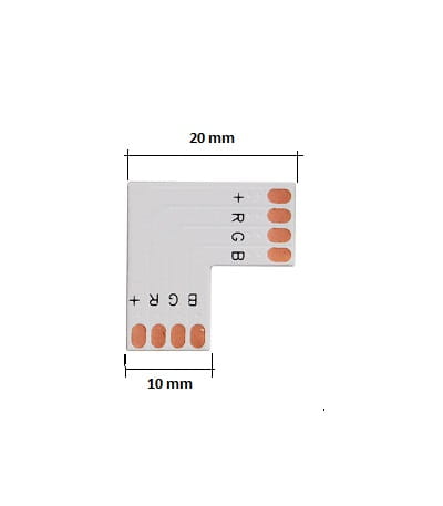Złączka kątowa "L" do połączenia dwóch odcinków taśmy,listwy LED RGB pod kątem 90 stopni .Przeznaczona do taśm i listw LED RGB o szerokości 10 mm. Sposób połączenia poprzez lutowanie .